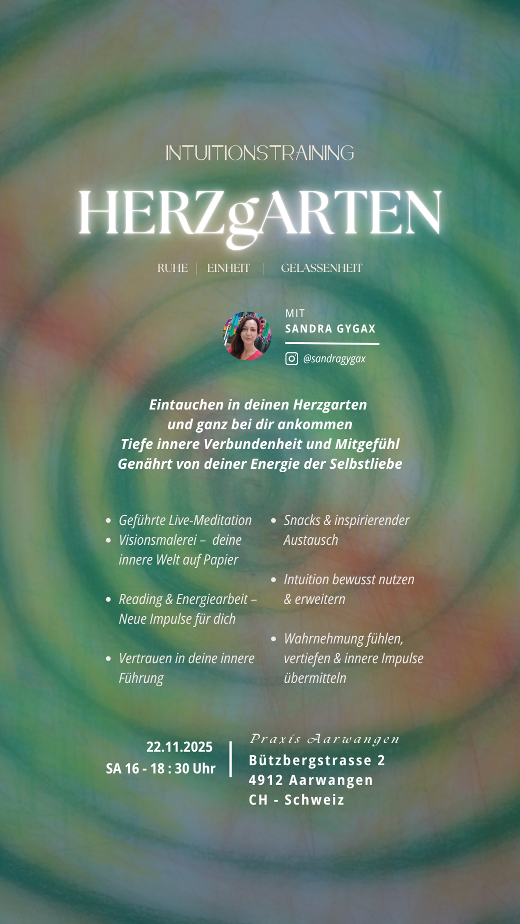 Die Gruppe bietet dir eine besondere Möglichkeit, deine intuitiven Fähigkeiten im Austausch mit anderen zu trainieren und bewusst in Kommunikation zu treten – unterstützt durch das wertvolle Feedback der anderen Kursteilnehmer.